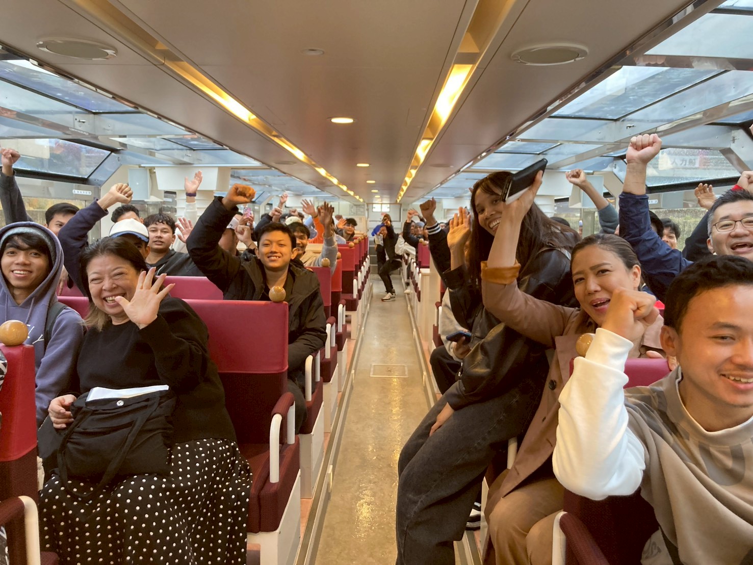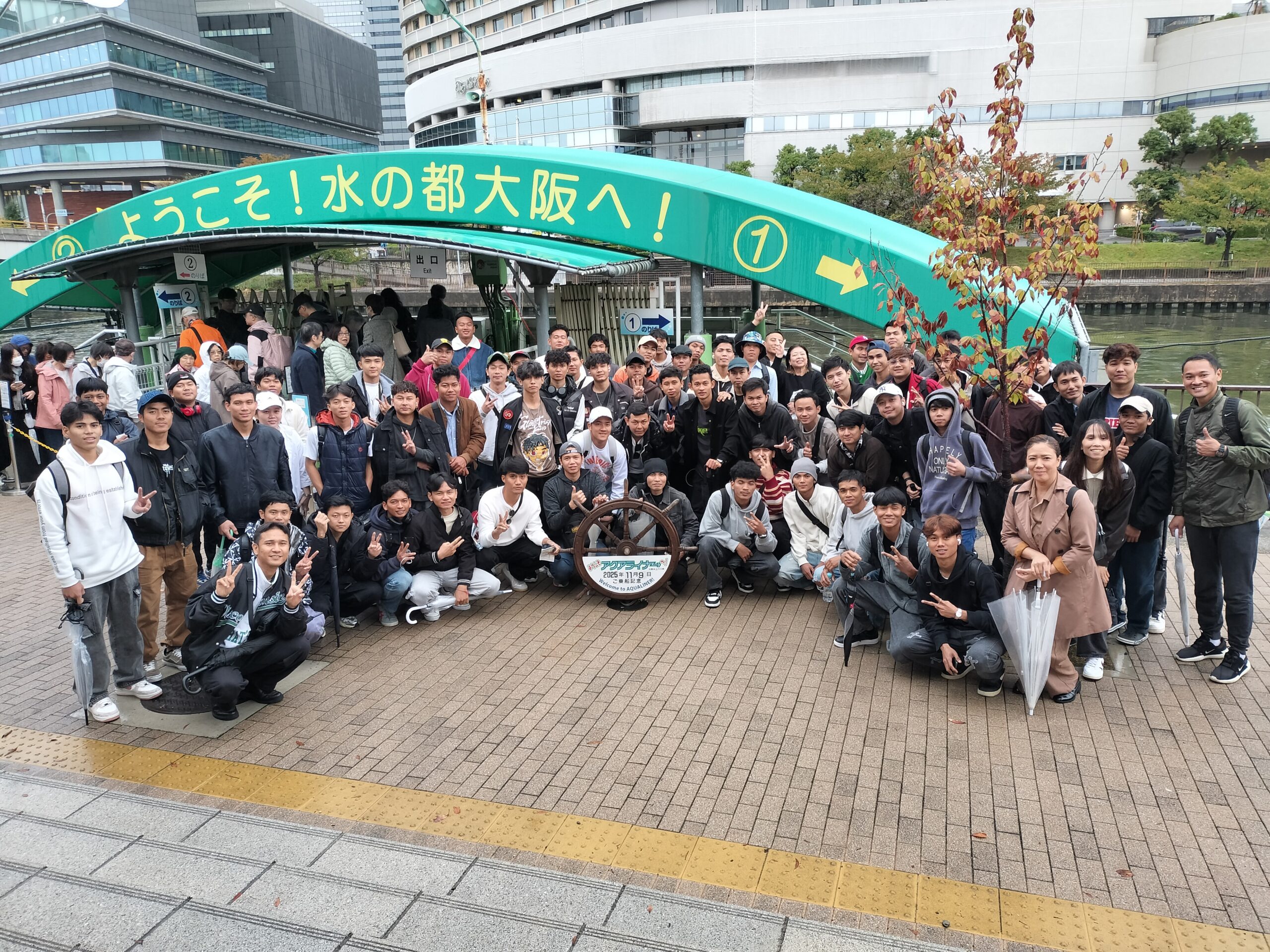 アクアライナーに乗船して、水の都大阪を満喫しました。外はあいにくの雨空でしたが、そんなことはおかまいなく船内はおおいに盛り上がってました 🔥